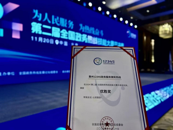與此同時,2024(第二屆)全國政務熱線技能大賽也在北京圓滿收官,經(jīng)過初賽、復賽、半決賽的比拼,歷經(jīng)7個月的層層選拔與角逐,惠州12345熱線在全國158支隊伍中脫穎而出,晉級全國總決賽,并榮獲“優(yōu)勝獎”。