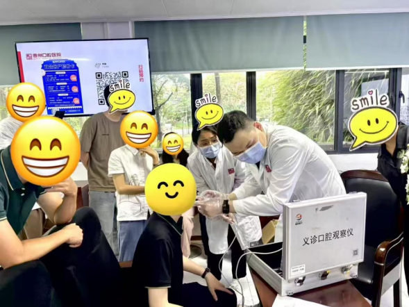 科普講座結束后,義診活動正式開始。專家團隊分組為干部職工進行一對一免費口腔檢查,借助專業(yè)口腔檢查設備,細致查看每位職工的牙齒、牙齦等口腔狀況。針對檢查中發(fā)現(xiàn)的問題,專家們不僅給出個性化的口腔護理建議,提供了具體的治療方案和注意事項。在咨詢環(huán)節(jié),干部職工踴躍提問,內(nèi)容涵蓋齲齒防治、牙齒矯正、牙齒美白、假牙護理等多個方面,專家們一一耐心解答,現(xiàn)場交流氛圍熱烈。