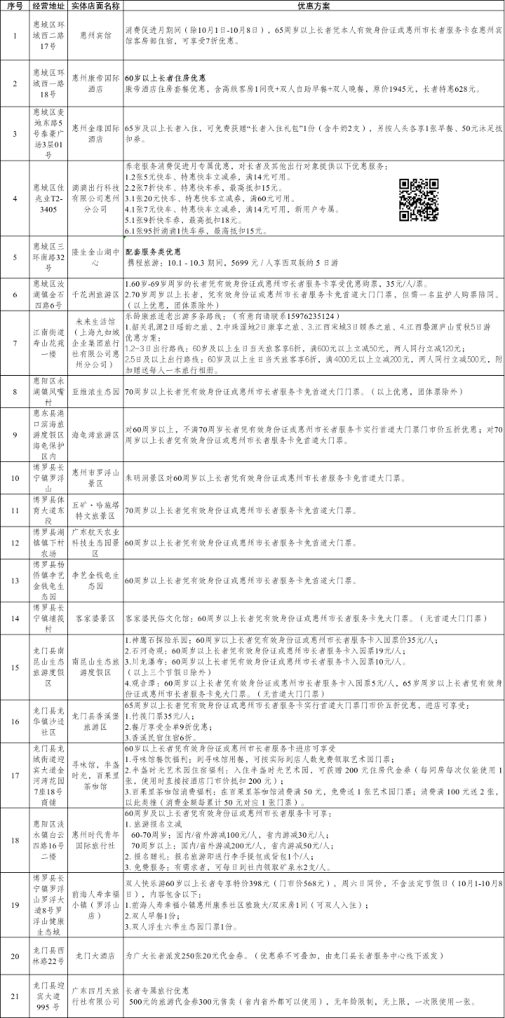 10月1日—31日,惠州賓館、惠州康帝酒店、旅行社、各大旅游景區(qū)、滴滴出行為老年朋友們提供了專屬福利,快收藏起來,享受美好出游吧!