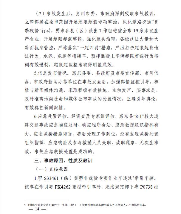 惠州市惠東縣“8·1”較大道路交通事故調(diào)查報(bào)告