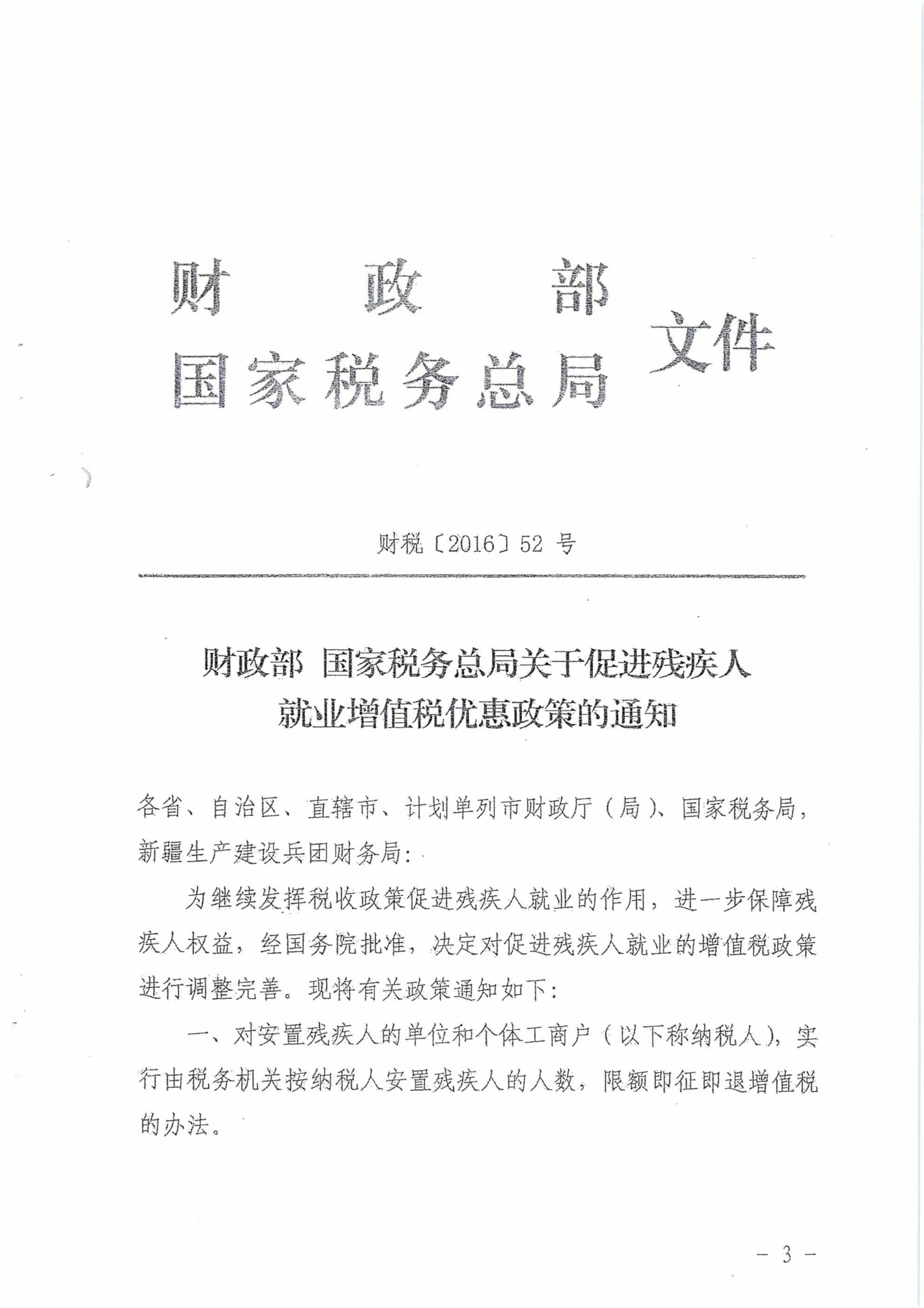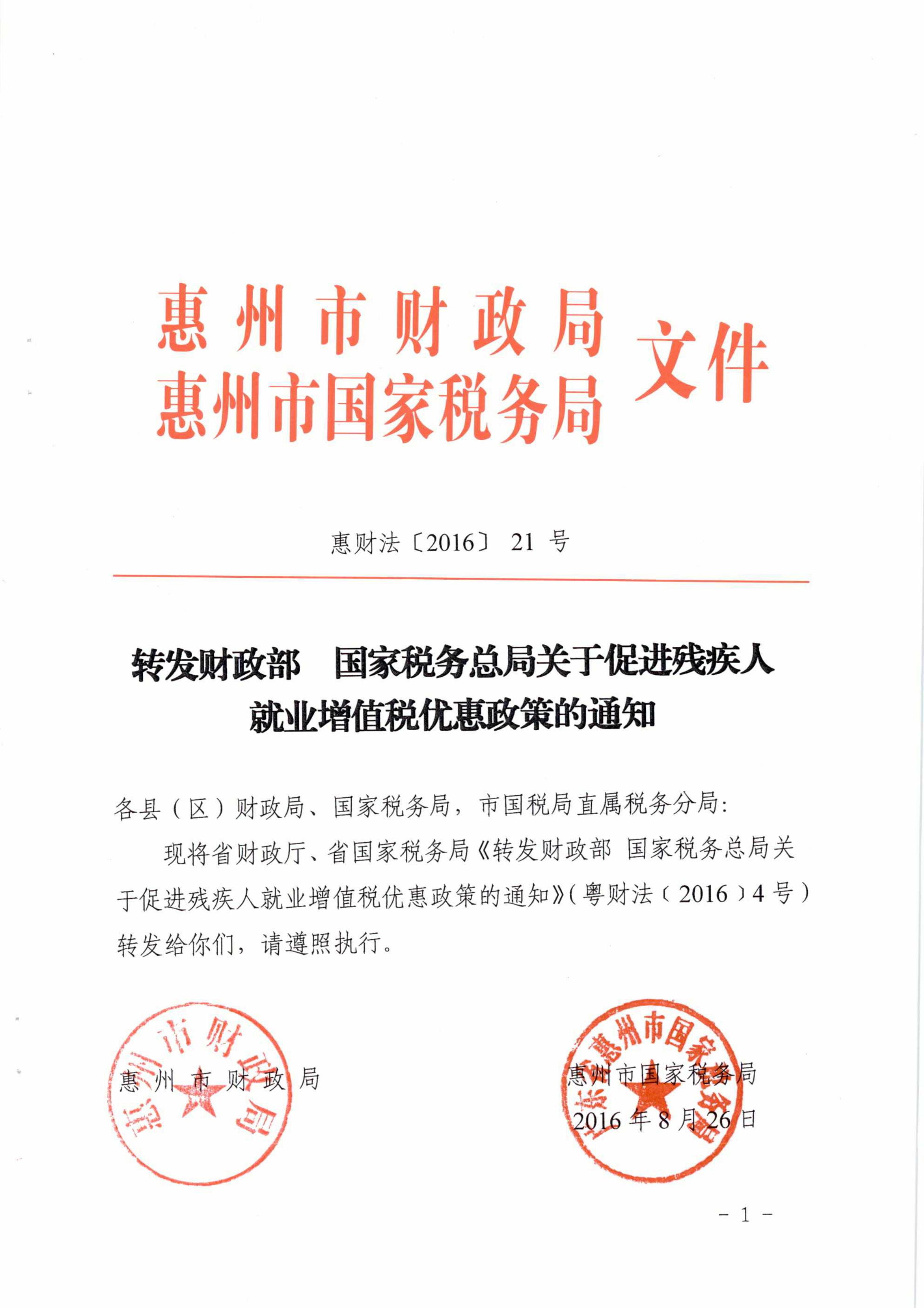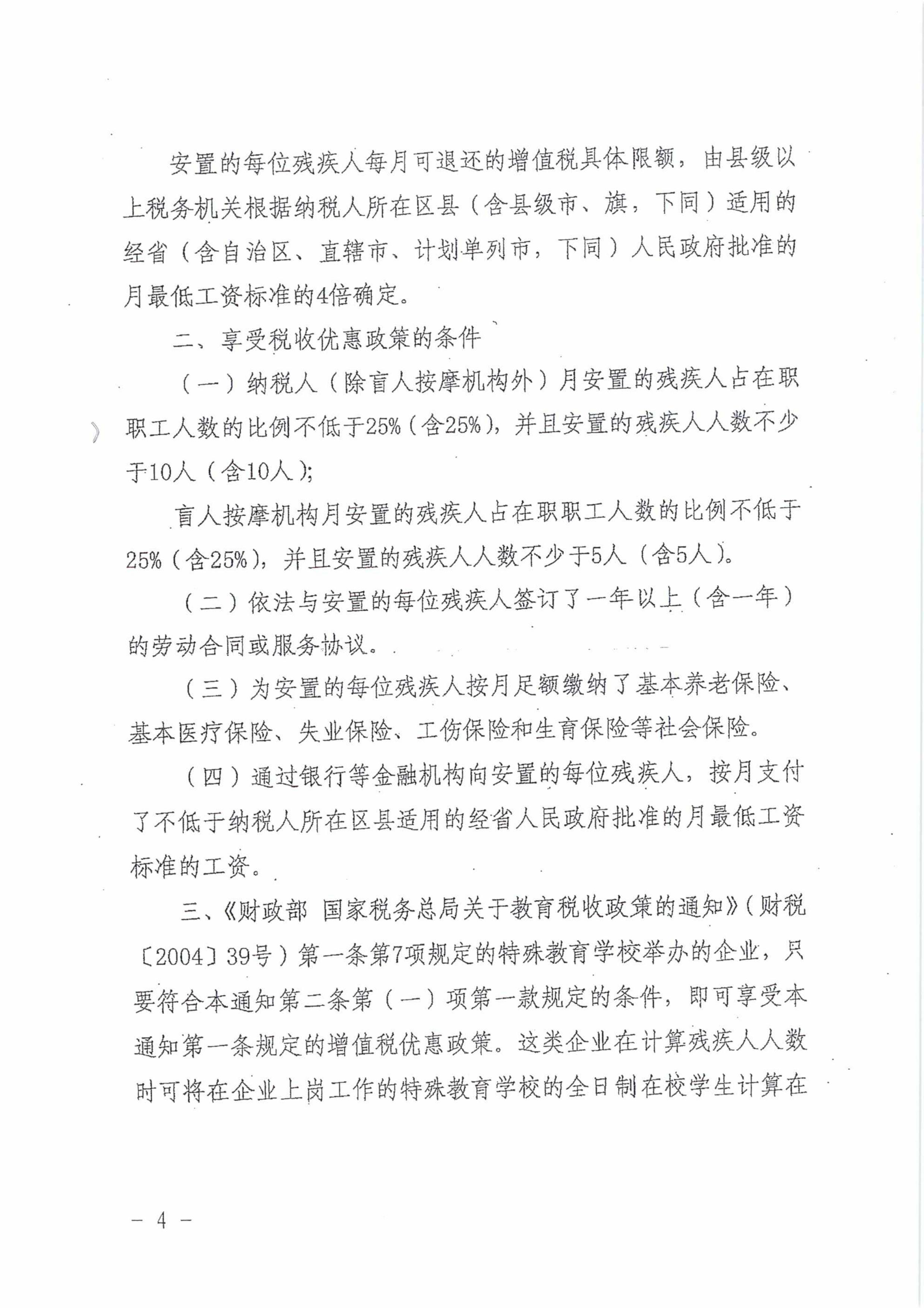 轉(zhuǎn)發(fā)財(cái)政部 國家稅務(wù)總局關(guān)于促進(jìn)殘疾人就業(yè)增值稅優(yōu)惠政策的通知
