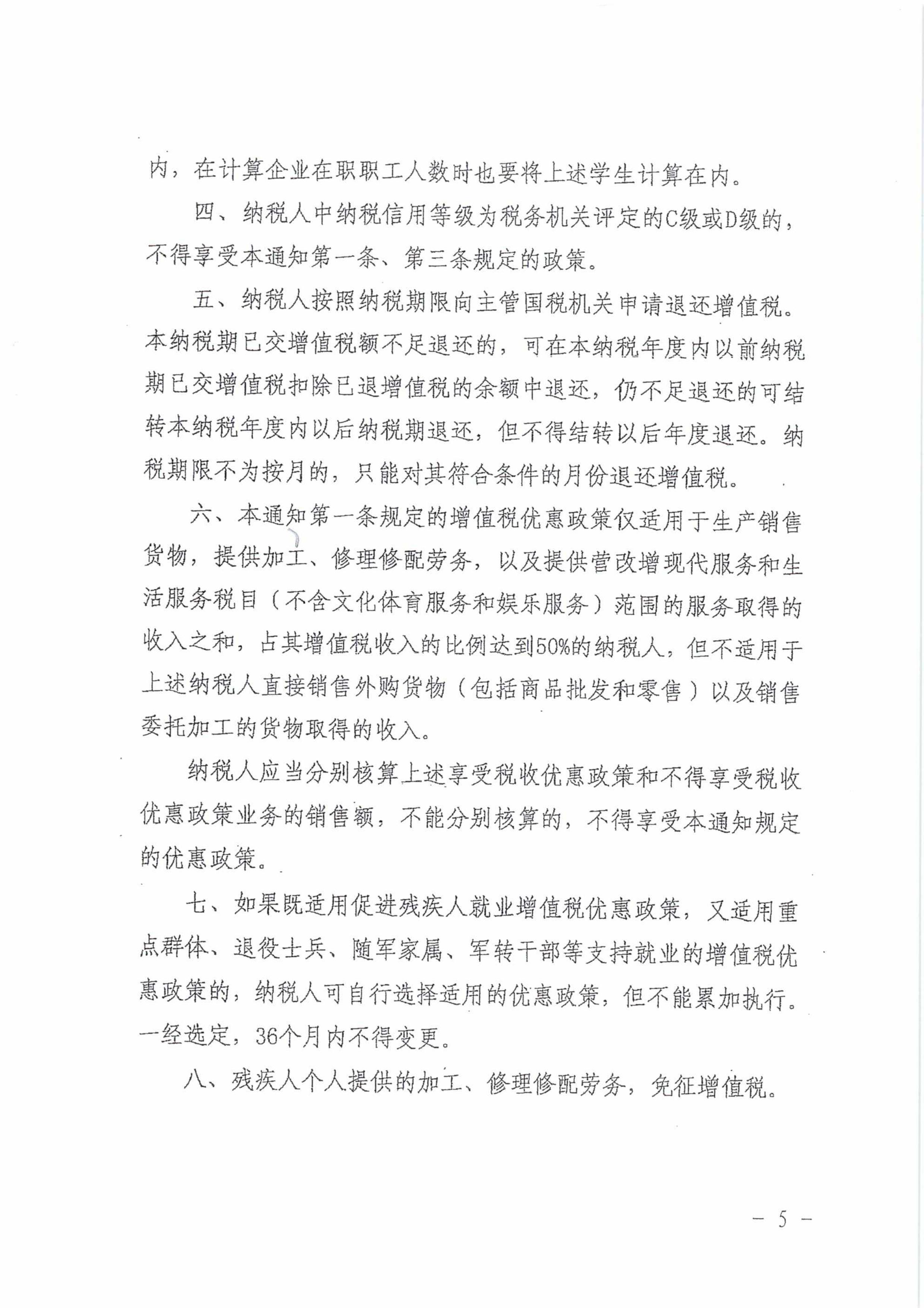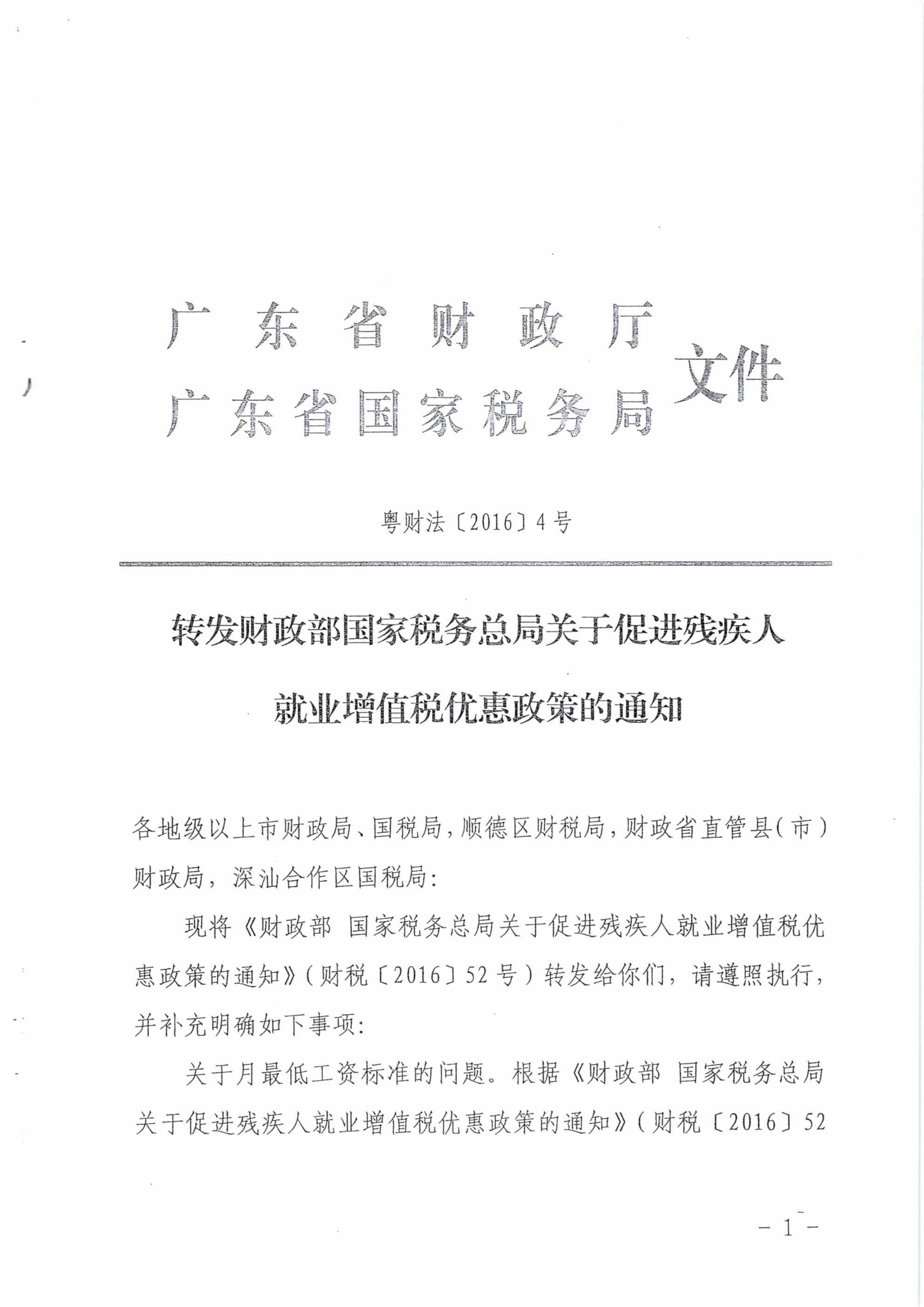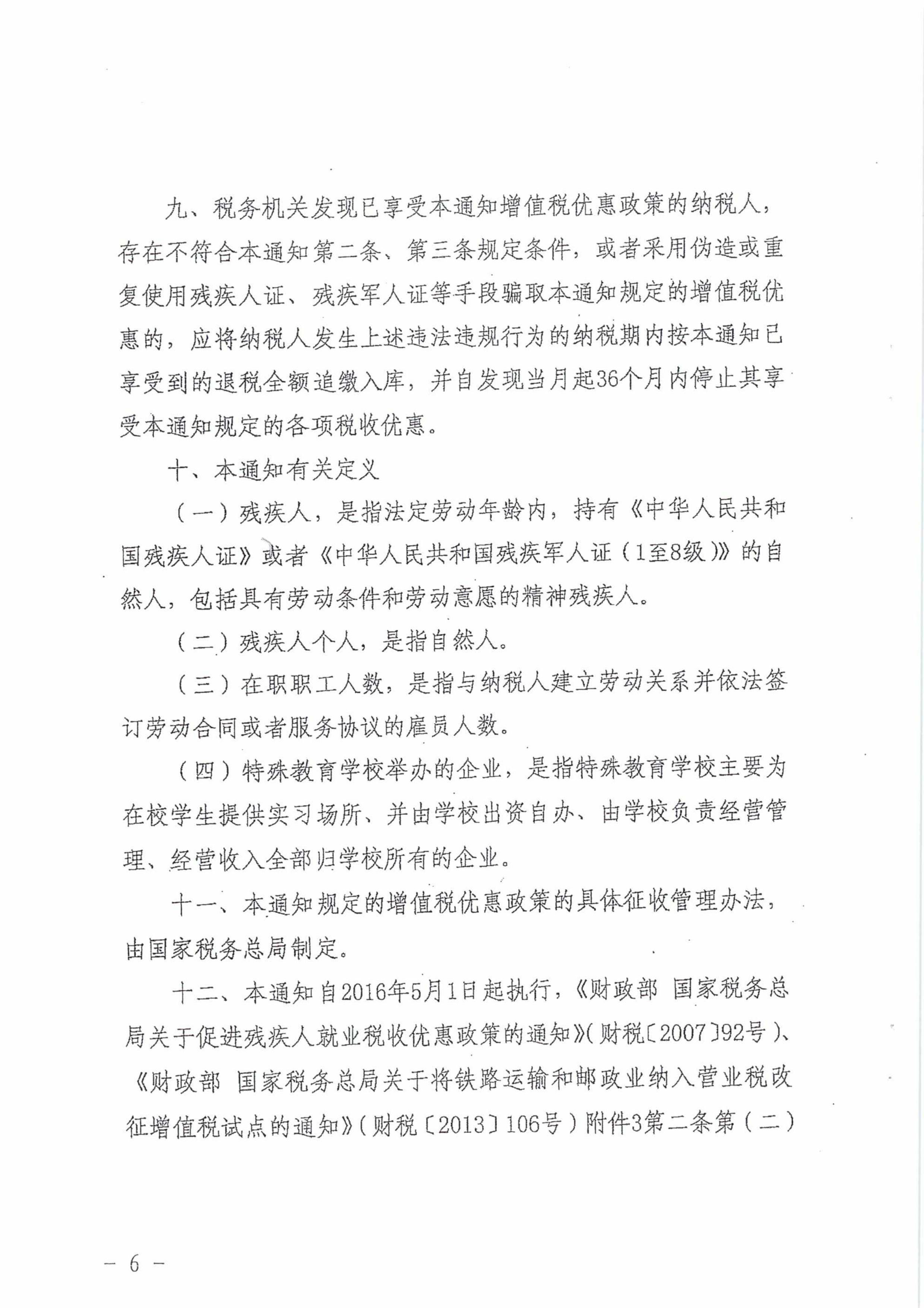 轉(zhuǎn)發(fā)財(cái)政部 國家稅務(wù)總局關(guān)于促進(jìn)殘疾人就業(yè)增值稅優(yōu)惠政策的通知