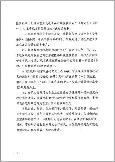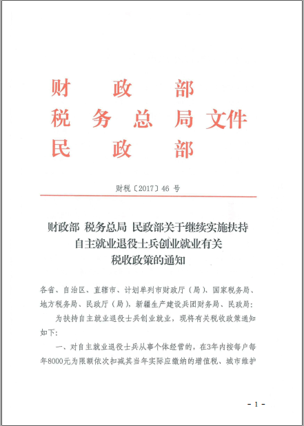 財政部 稅務總局 民政部關于繼續實施扶持自主就業退役士兵創業就業有關稅收政策的通知