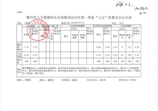 惠州市人力資源和社會保障局2018年第一季度“三公”經費支出公開表