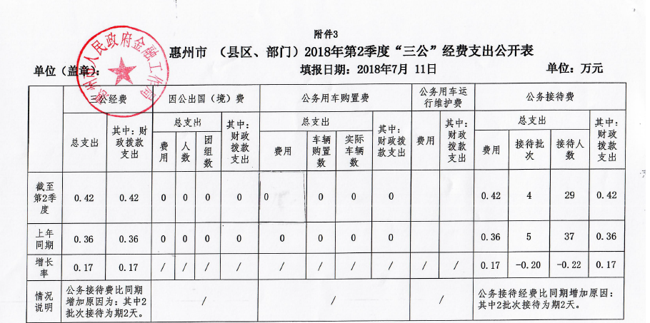 2018年第二季度惠州市金融局“三公經費”支出公開表