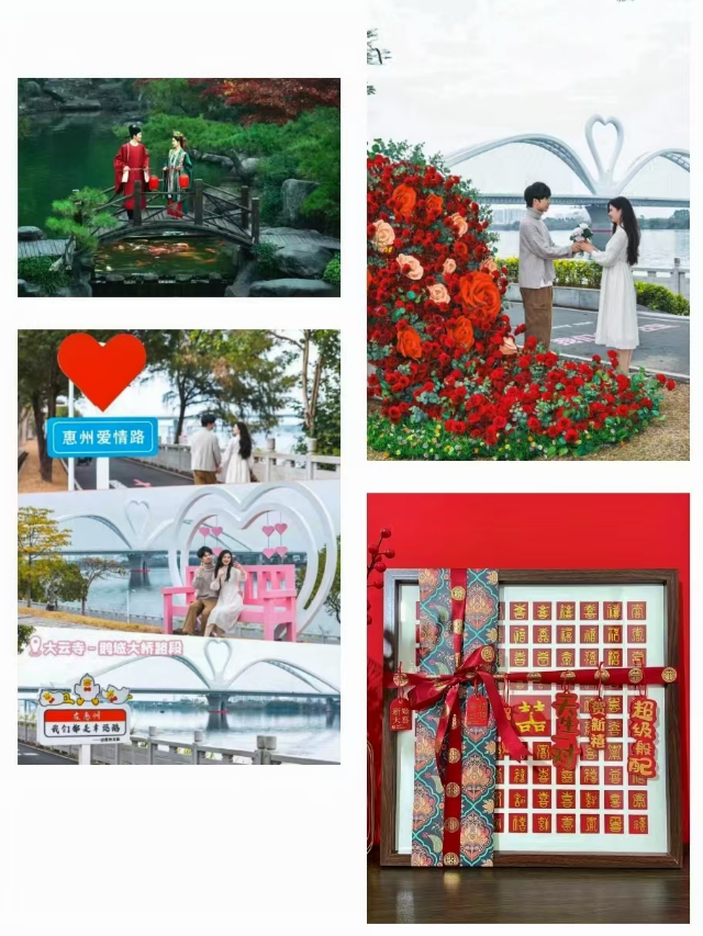 活動亮點 惠州新地標打卡:鵝城大橋打卡點由專業攝影師拍攝寫真照片、參與拍攝活動宣傳短片,留下美好回憶。 專屬福利:提供宋式婚禮服裝及妝造、活動專屬紀念品、趣味游園小禮品,讓您在體驗傳統婚禮的同時,收獲滿滿的幸福。 全程免費:本次活動旨在倡導“重登記、強責任、崇節儉、尚文明”的婚俗新風,不收取任何費用,讓您輕松參與,感受浪漫。