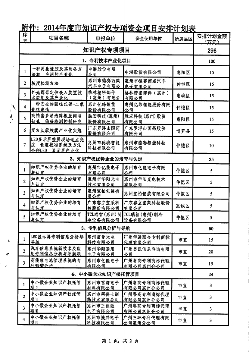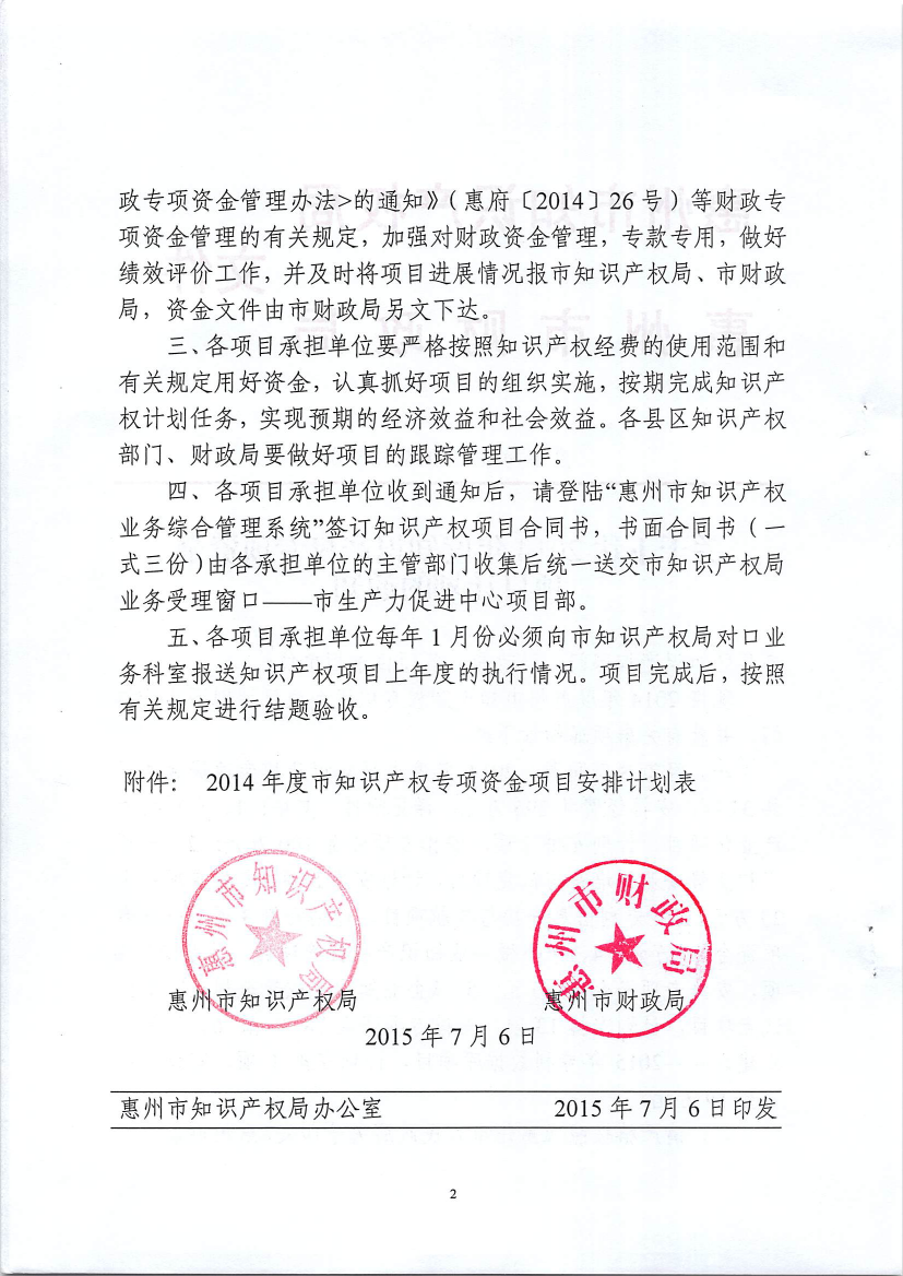 關于下達2014年度知識產權專項資金項目計劃的通知