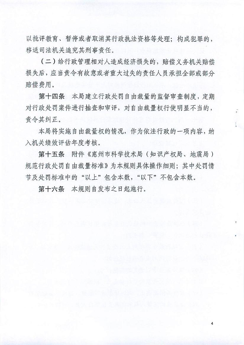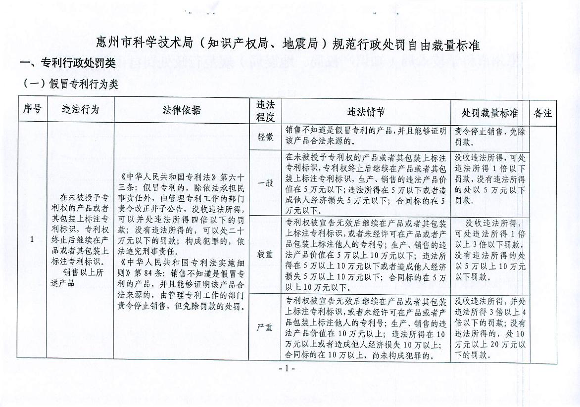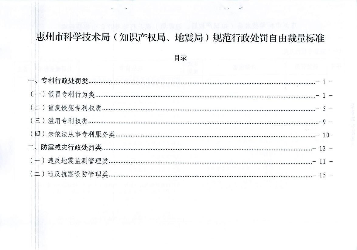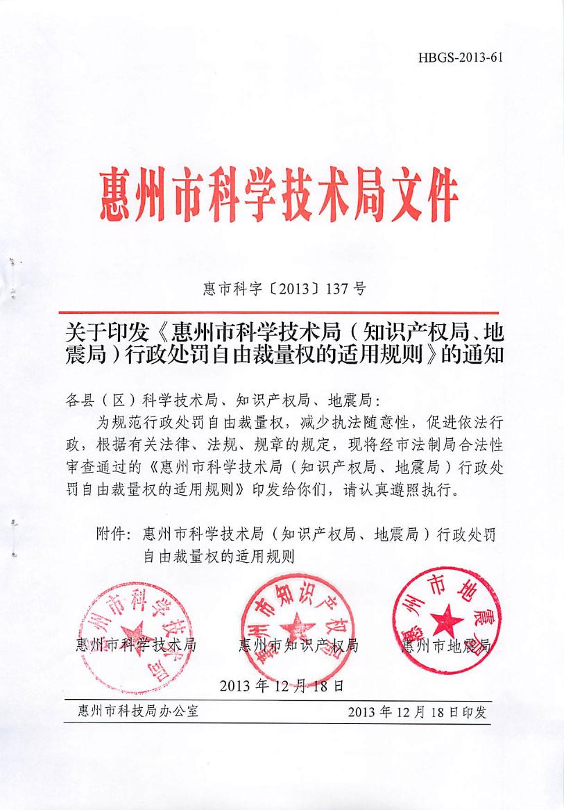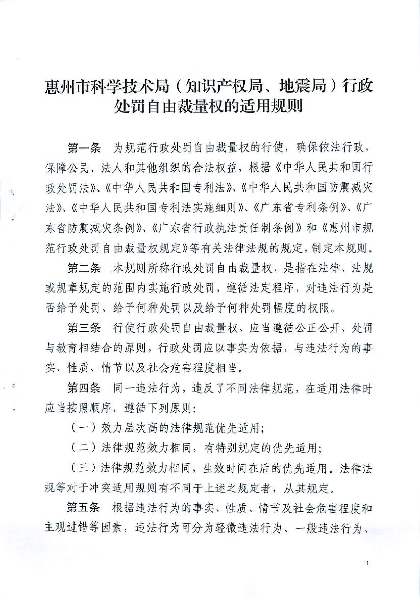 關(guān)于印發(fā)《惠州市科學(xué)技術(shù)局(知識產(chǎn)權(quán)局、地震局)行政處罰自由裁量權(quán)的適用規(guī)則》的通知