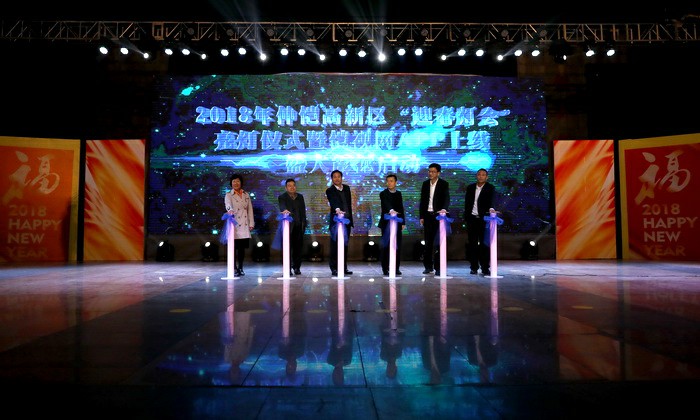12月28日晚,以“高舉創新旗幟 共筑強國夢想”為主題的仲愷高新區2018年迎春燈會亮燈儀式在仲愷公園廣場舉行。