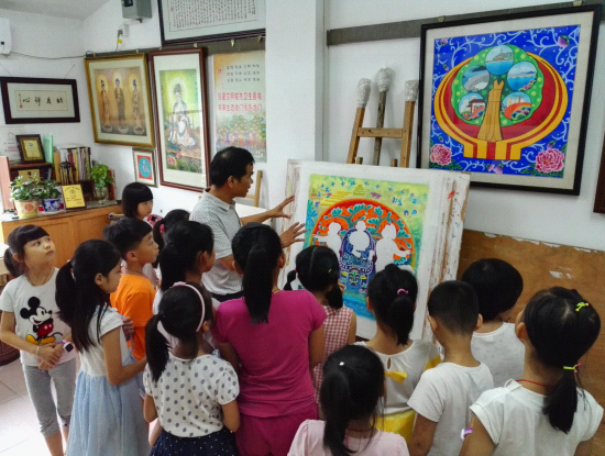 龍門農民畫公益培訓一直是龍門縣文廣新局的常態化工作品牌。龍門縣文廣新局在今年暑期組織農民畫畫家先后到全縣各鄉鎮文化站、綜合文化服務中心對青少年進行農民畫繪畫輔導和培訓,不僅讓青少年傳承龍門農民畫這一特色文化品牌,而且通過農民畫對青少年進行社會主義核心價值觀教育,讓優秀傳統文化藝術扎根下一代,提升青少年的審美感受,引導青少年感悟龍門農民畫的藝術美,以真、善、美教育為主,以農民畫為載體,讓青少年寓教于樂、寓教于畫中,培養青少年熱愛家鄉、熱愛祖國的情懷。