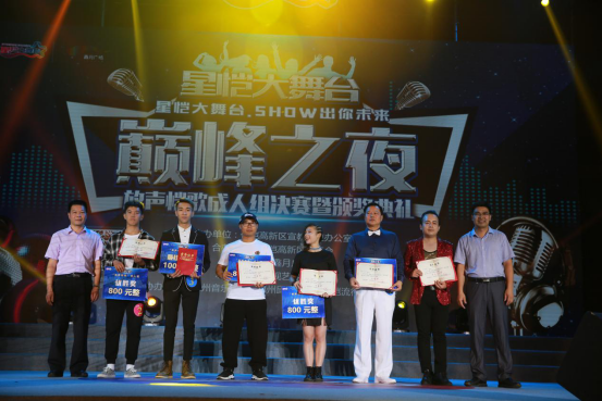 區委常委、區宣教文衛辦公室主任徐頌為“放聲愷歌”成人組冠亞季軍頒發獎杯、榮譽證書以及現金大獎
