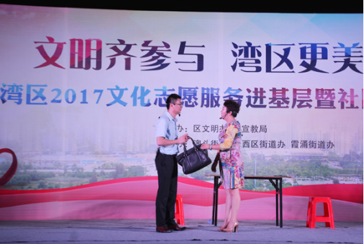 9月19日,我市大亞灣區宣教局在澳頭漁人碼頭舉辦了2017年文化志愿服務進基層暨社區文藝演出活動。迎接全國文明城市復檢工作已經進入關鍵時刻,為了加強創文宣傳,在演出前文化志愿者向群眾發放了文明城市創建宣傳資料共200份,區宣教局還在演出中加入了文明城市創建有獎知識問答活動,共送出文明創建宣傳禮品30份。
