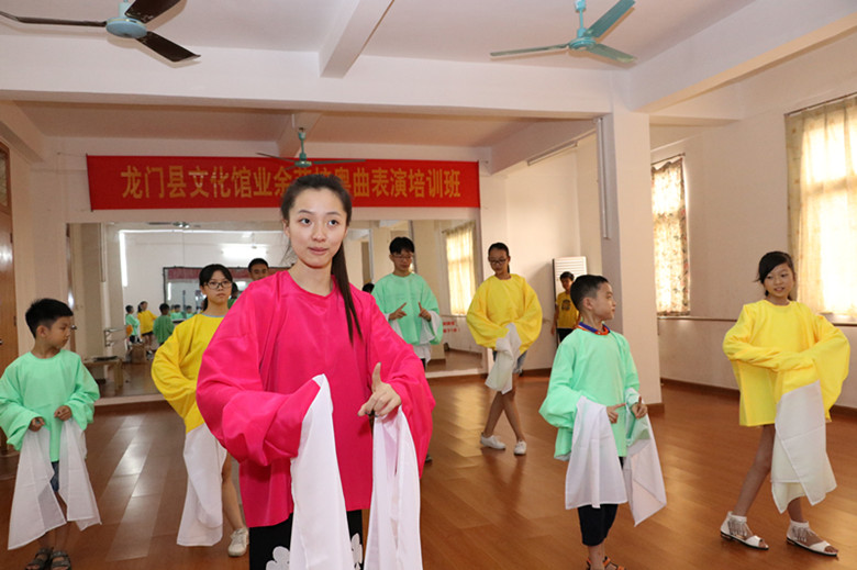 為豐富青少年暑期文化藝術生活,促進戲曲傳承發展,弘揚中華優秀傳統文化,龍門縣文化館于8月7日-11日面對青少年特別開設粵曲表演培訓班,邀請中央戲曲學院導演系畢業的彭芷瀅(現上海戲劇學院導演系研究生專業在讀)任課。