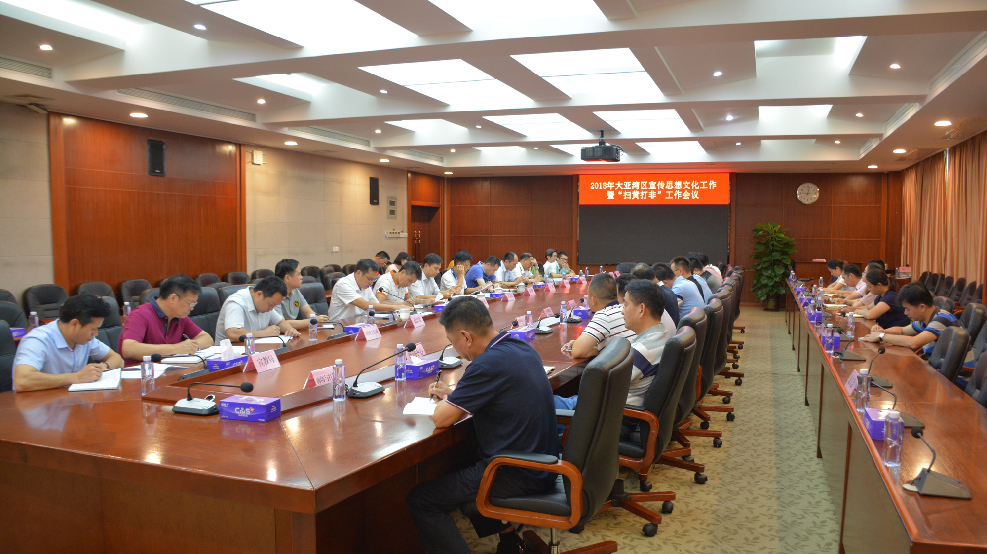 7月27日上午,大亞灣區召開2018年宣傳思想文化工作暨“掃黃打非”工作會議,區委常委、區兩委辦主任、區“掃黃打非”工作領導小組組長嚴文生,區管委會副主任、區“掃黃打非”工作領導小組副組長楊遠輝,區屬相關單位分管領導、區“掃黃打非”各成員單位領導、區宣傳文化系統工作人員參加了會議。