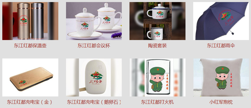 “東江紅都”系列產品,以“東江紅都”為主題的旅游商品。以產品為載體,通過廣告、活動和產品本身,撫今追昔,緬懷革命先烈,宣傳廣東省紅色旅游。