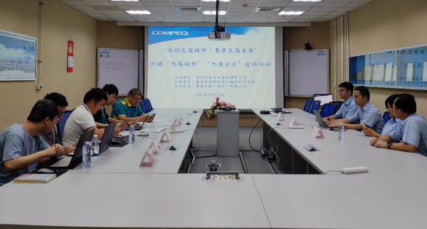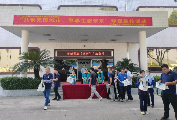 活動期間,博羅分局相關工作人員傳達了“無廢城市”建設理念,引導企業做好危險廢物和工業固體廢物規范管理,并在企業場所內派發“無廢城市”宣傳單和環保宣傳袋,強化了企業環境保護主體意識,提升企業對“無廢城市”的認識,營造良好的社會宣傳氛圍;華通電腦(惠州)有限公司相關負責人現場分享了“無廢工廠”建設經驗,交流了推動綠色辦公、中水回用、節能降碳方面采取的措施和取得的具體成效。