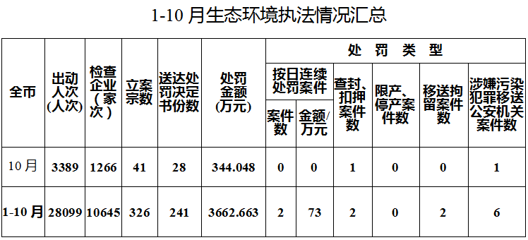 1-10月,全市11個國考斷面(地表水8個、水庫1個、入海河流2個)水質優良率為100%,劣V類比例為0。