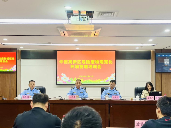 為提升危險廢物產生經營單位規范化管理水平,進一步壓實涉危廢企業污染防治主體責任,惠州市生態環境局仲愷高新區分局(以下簡稱“仲愷分局”)分兩批次組織召開了危險廢物規范化環境管理培訓會。轄區內各園區、鎮(街道)分管領導、環保辦主任及104家年產量10噸以上的產廢企業參與了本次會議。