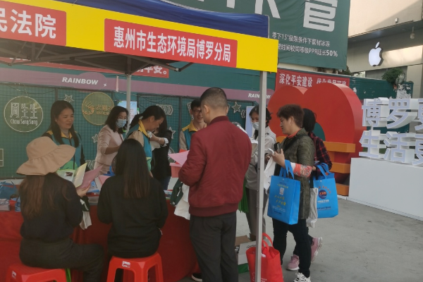 建設社會主義法治文化”的宣傳展板。博羅分局相關普法人員在現場為路過的人群發放《環保小衛士》、《企業環保普法手冊》、《綠色低碳節能先行》等宣傳手冊和環保袋,宣傳憲法知識、生態環境保護的相關法律法規、綠色低碳生活及生活中常用的法律知識,為群眾解答切身利益的法律咨詢,幫助群眾正確理解、掌握基本的法律知識,充分運用法律維護自己的合法權益,形成辦事依法、遇事找法、解決問題用法的法治思維,進一步強化法治意識,為博羅縣域高質量發展營造良好的法治氛圍。本次活動博羅分局共派發宣傳資料200余份,解答群眾法律咨詢18人次。