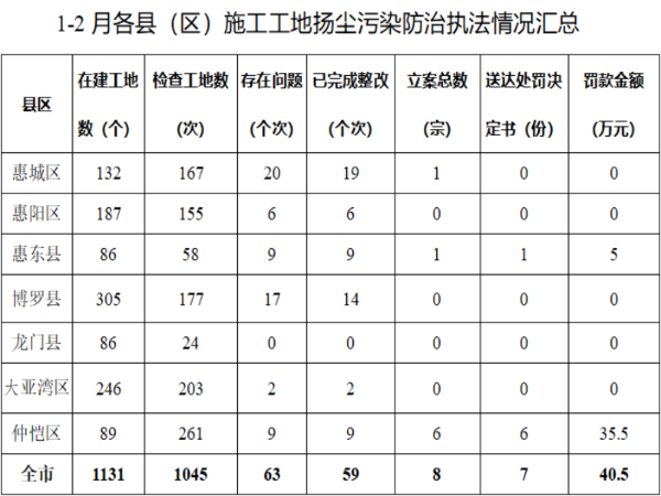 二、揚塵污染防治執法情況。
