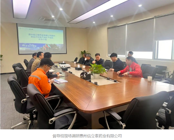 督導組一行首先來到惠州信立泰藥業有限公司,聽取了該公司對現有項目生產運營情況和正在報批的原料藥及片劑生產線擴產項目情況的匯報。隨后,督導組全面檢查了廢水、廢氣治理設施運維情況;詳細了解新建項目的環評工作進展情況。督導組一行充分肯定企業通過新建RTO處理設施減少廢氣源頭排放的做法;并要求企業充分落實“以新帶老”要求,以新建項目為契機,進一步優化提升全廠廢氣收集處理系統,做到源頭減排、靶向治污,充分落實企業環保主體責任。