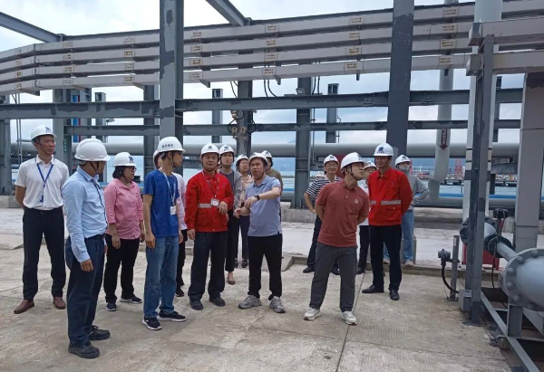 隨后,調研組抵達馬鞭洲油庫,調研成品油倉儲有關工作。在實地參觀了惠州市華德石化有限公司油品倉儲、裝卸、運輸等各個環節后,調研組對企業在環境管理方面所做的工作表示充分肯定,同時要求企業要進一步加強日常巡查檢查,對維修檢修環節的產污、治污工作要追求精益求精,切實減少油氣揮發,持續改善環境空氣質量。