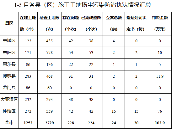 二、揚塵污染防治執法情況
