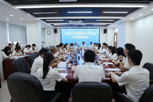 7月8日下午,惠州市生態環境局召開了2024年新錄用公務員集體報到會。市生態環境局副局長陳建國、人事科科長、各縣(區)分局人事分管領導和人事干部以及15名新錄用公務員參加了會議。