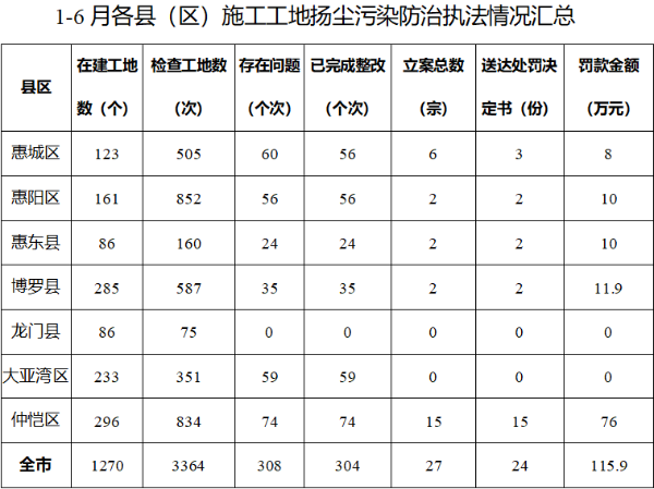 二、揚(yáng)塵污染防治執(zhí)法情況