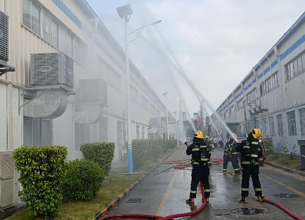 現(xiàn)場(chǎng)演練前動(dòng)員 演練以桌面推演、現(xiàn)場(chǎng)演練兩種形式開展。演練期間一是宣貫《突發(fā)環(huán)境事件應(yīng)急管理辦法》《企業(yè)突發(fā)環(huán)境事件隱患排查和治理工作指南》等文件,強(qiáng)調(diào)參會(huì)企業(yè)應(yīng)壓實(shí)主體責(zé)任,落實(shí)環(huán)境安全隱患排查整治、常態(tài)化使用廣東省環(huán)境應(yīng)急綜合管理系統(tǒng)等環(huán)境應(yīng)急管理要求;二是推演在不同等級(jí)應(yīng)急響應(yīng)的情景設(shè)定下,企業(yè)、部門如何開展應(yīng)急響應(yīng),進(jìn)一步加深各參演單位對(duì)企業(yè)突發(fā)火災(zāi)事故的應(yīng)急處置方式、政企聯(lián)動(dòng)應(yīng)急處置機(jī)制的了解。三是現(xiàn)場(chǎng)演練消防滅火、廠內(nèi)外事故污水應(yīng)急監(jiān)測(cè)、污水強(qiáng)化處理、事故污水轉(zhuǎn)輸?shù)瓤颇?,鍛煉了?yīng)急救援隊(duì)伍,磨合了政企聯(lián)動(dòng)應(yīng)急處置機(jī)制,提升了環(huán)境風(fēng)險(xiǎn)防控能力。