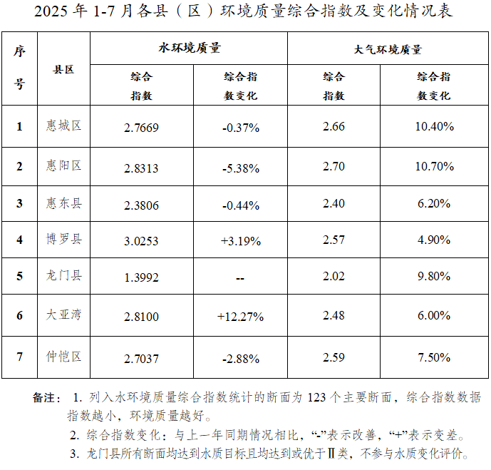 1-7月,全市環(huán)境空氣質量綜合指數為2.58,同比上升6.2%;優(yōu)良率為95.3%,同比下降1.9個百分點。