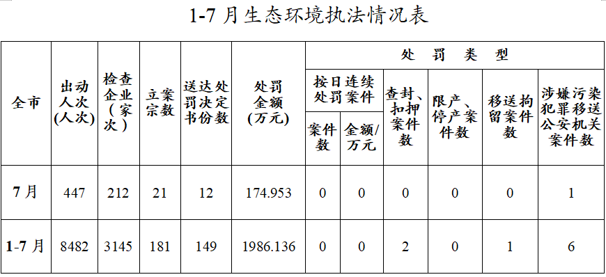 1-7月,19個省考斷面(其中11個國考斷面)水質優(yōu)良率為100%,劣V類比例為0。
