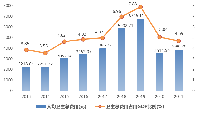 2013-2021年全市衛(wèi)生總費(fèi)用