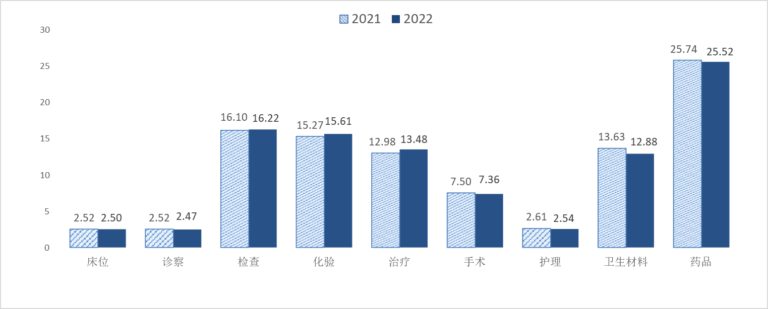 2021-2022年公立醫(yī)院醫(yī)療收入構(gòu)成(%)