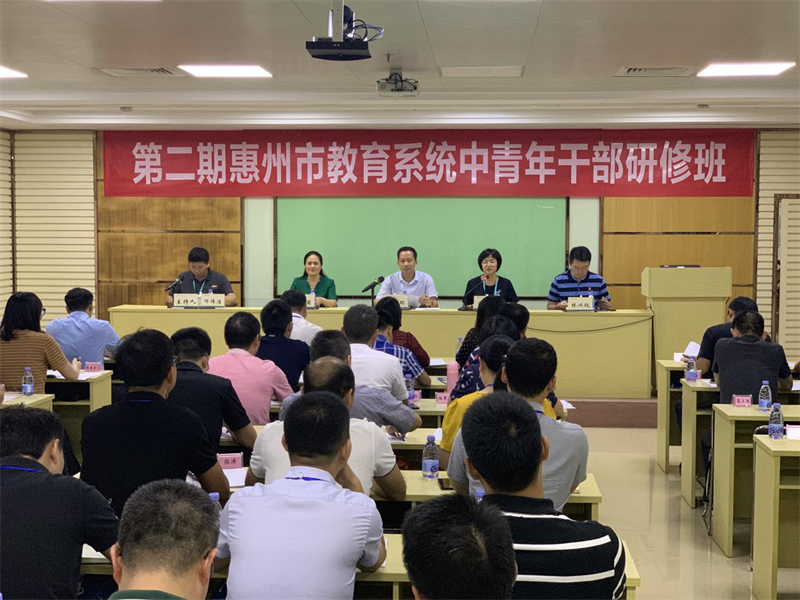10月14日上午,惠州市教育系統2019年中青年干部研修班開班儀式在惠州學院舉行,市教育局黨組成員、副局長吳清環出席儀式并講話,惠州學院繼續教育學院院長肖福玲、市教育局師資培訓科、人事科負責人以及62名研修班學員參加了開班儀式。