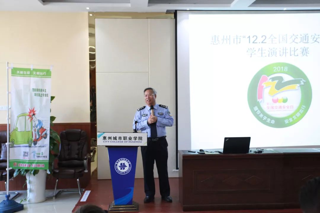 在第七個全國交通安全日到來之際,為營造“細節關乎生命 安全文明出行”的良好交通安全氛圍,認真貫徹落實《國務院關于加強道路交通安全工作的意見》、開展“12.2”全國交通安全日主題活動的通知精神,市教育局聯合市公安局交通警察支隊、馬路天使志愿服務隊,組織“細節關乎生命 安全文明出行”為主題交通安全演講比賽,于11月23日在惠州市城市職業學院舉辦學生演講總決賽。