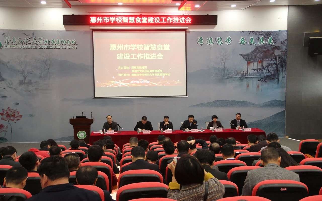 1月10日上午,惠州市學校智慧食堂建設工作推進會在華南師范大學附屬惠陽學校召開,市教育局副局長楊炎林、市食品藥品監督管理局副局長賴卓斌,以及縣區教育局等參加了會議。