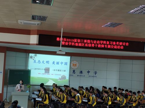 首先,由省級骨干教師惠港中學的陳麗華老師上了題為《生態文明 美麗中國》的中考專題復習課。她精心設計教學環節,在課堂中關注時政,聚焦考點,注重提升學生合作探究能力。教學環節層層落實,環環相扣,讓在場的師生獲益匪淺。
