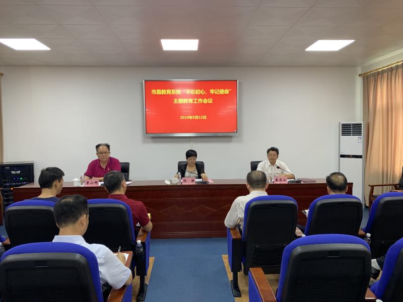 9月12日下午,為傳達學習市委主題教育工作會議精神,開展好市直教育系統“不忘初心、牢記使命”主題教育,市直教育系統主題教育工作會議在市教育局召開。市委第二十指導組成員到場指導。會議由市教育局黨組副書記、主任督學曾小輝同志主持,市委教育工委書記、市教育局黨組書記、局長袁清山同志作動員講話,市委第二十指導組組長練靜同志出席會議并講話。