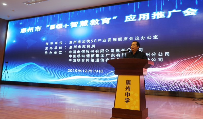 為貫徹落實教育部《教育信息化2.0行動計劃》和《廣東省教育廳關于配合推進5G產業發展戰略的通知》精神,配合我市推進5G產業發展工作,加強5G在全市教育行業的科普宣傳與推廣應用,12月19日下午,我局在惠州中學舉辦惠州市“5G+智慧教育”應用推廣會,市5G辦、工信局湯俊副局長,教育局鄧凡用副局長,中國電信彭錦秋副總經理,中國移動黃覃恩副總經理,中國聯通朱偉強副總經理出席并分別在會上致辭,會議由市電教站負責人主持。各縣區教育局分管領導、教研室、電教站負責人,各中小學校校長及骨干老師共300余人參加會議。