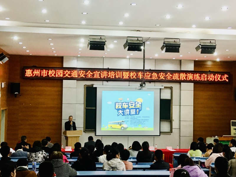 為進(jìn)一步提高師生交通安全意識(shí),規(guī)范我市校車安全管理,使廣大師生熟練掌握校車應(yīng)急逃生技能,12月9日上午,我局聯(lián)合市公安局、市消防救援支隊(duì)在北京師范大學(xué)珠海分校惠州附屬學(xué)校舉行惠州市校園交通安全宣講培訓(xùn)暨校車應(yīng)急疏散演練啟動(dòng)儀式。市教育局楊炎林副局長,市公安局交警支隊(duì)駱其暖科長,市消防救援支隊(duì)林小龍科長等領(lǐng)導(dǎo)出席。各縣(區(qū))教育局,惠州市馬相華交通安全公益推廣中心、鄭州宇通客車股份有限公司、惠州市東江校車服務(wù)有限公司,以及北京師范大學(xué)珠海分校惠州附屬學(xué)校等300余所學(xué)校領(lǐng)導(dǎo),共400余人參加。