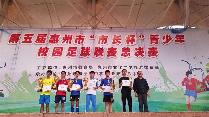 “市長杯”青少年校園足球聯賽自2015年舉辦以來,每年一屆,今年已是第五屆。此次總決賽分小學、初中、高中男女共六個組別,由各縣(區)和市直學校足球聯賽的39支冠軍隊伍,共計800多名青少年運動員參與。經過5天的激烈角逐,小學男(女)子組第一名均由惠東縣實驗小學獲得,仲愷高新區仲愷中學獲得初中男子組第一名和高中女子組第一名、龍門縣龍門中學獲得初中女子組第一名和高中男子組第一名。