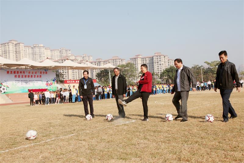 11月25日下午,第五屆惠州市“市長杯”青少年校園足球聯賽總決賽在市華羅庚中學圓滿落下帷幕。本屆賽事由市教育局、市文化廣電旅游體育局主辦,分三個場地:市華羅庚中學、市八中、市一中實驗學校舉行,市教育局黨組書記、局長袁清山出席了開幕式并為球賽開球。
