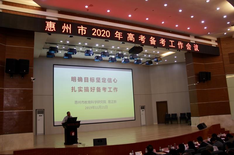 11月21日下午,惠州市2020屆高考備考工作會議在市一中高中部舉行,市教育局袁清山局長出席會議并講話,鄧凡用副局長主持會議,市教科院院長易正新及部分教研員,各縣(區)分管教學教研副局長和教研室主任,全市所有高中校長、高三分管領導和高三年級長共150余人參加會議。