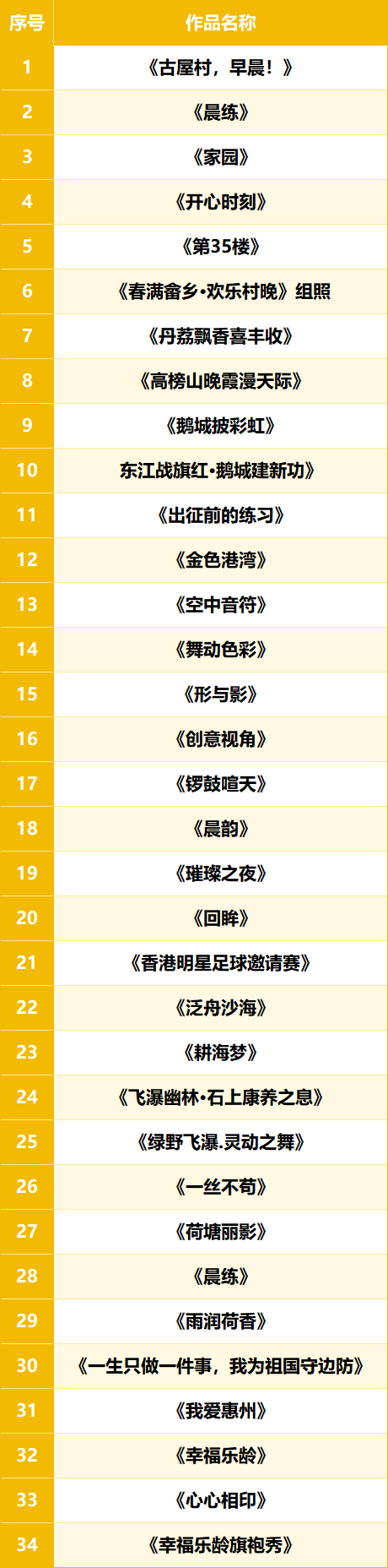惠州市第二屆“惠幸福·銀齡秀”比賽(第二季)海選活動(書畫攝影)線上報名作品數量共199幅,涵蓋書法作品、繪畫作品、攝影作品三大類,經過專家評審,共有126幅作品入圍決賽,將在豐湖書院樂群堂展出。現公布入圍作品名單和有關事項: (排名不分先后) 決賽時間:2025年10月14日(10:00-10:30) 展覽時間:2025年10月14日-10月17日(9:00-17:00,10月14日10:00開始) 地址:豐湖書院樂群堂 (一)書法、繪畫類作品要求 書法、繪畫類作品由作者自行裝裱,請作者于10月9日前將裝裱好的作品交至承辦方,聯系人:小九(18028481590),地址:惠州市惠城區江南街道壽山路4號智慧中心(即祝屋巷黨群服務中心對面),可通過自行送達或者快遞的形式交稿,作品的完整性和運輸產生的費用由作品本人負責。 (二)攝影類作品要求 攝影類作品由工作人員統一安排排版印刷,并帶至現場展示。 1.參賽者在參加線下決賽前確保自身身體情況良好,如現場出現身體不適的情況立馬與工作人員反映。 2.活動場地設有停車場,停車費需自行負責,建議乘坐公共交通或拼車前往。