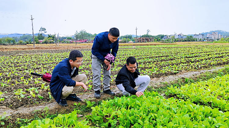 為了解冬種包心芥菜示范種植情況,11月7日,惠州市農業科學研究所(以下簡稱“市農科所”)農村科技特派員團隊與駐鎮工作隊一行7人,前往龍門縣龍江鎮羅洞村、龍江村和石前村的田間地頭,指導芥菜病蟲害防治技術。