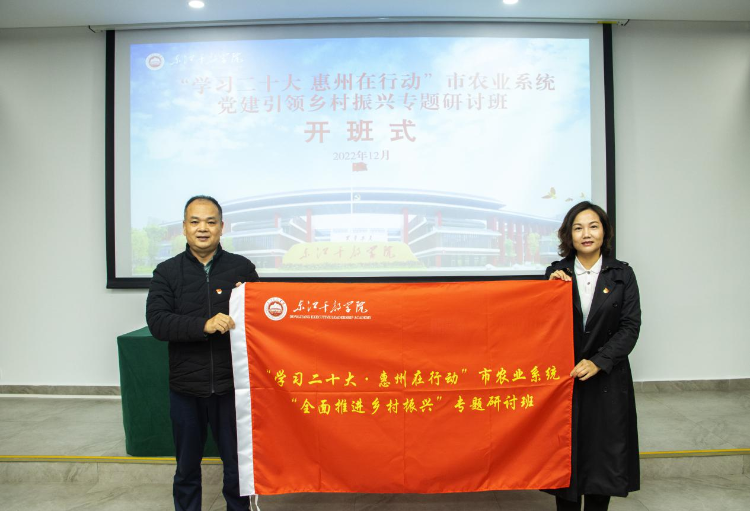 12月1日下午,由惠州市委組織部主辦,市農業農村局協辦的“學習黨的二十大 惠州在行動”全市農業農村系統黨建引領鄉村振興專題研討班在廣東東江干部學院順利開班。市委農辦常務副主任、市農業農村局黨組成員、市鄉村振興局常務副局長朱燕含作開班動員講話。