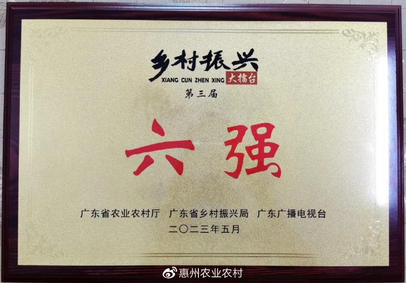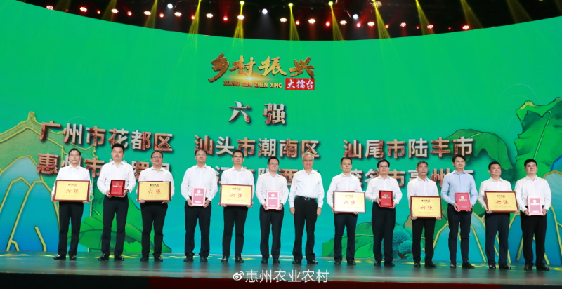 5月18日,廣東省第三屆“鄉村振興大擂臺”比賽頒獎晚會在廣州市舉行。惠州憑借過硬實力和優異表現,榮獲“全省六強”“網絡人氣獎”“愛心企業獎”。 作為惠州市參賽代表的博羅縣,經過激烈角逐,最終以759.9分成功晉級全省六強。此外,惠州還獲得“網絡人氣獎”,泰康健康產業投資控股有限公司獲得“愛心企業獎”。 副市長黎炳盛代表惠州市上臺領取“全省六強”獎。惠州市委農辦主任,市農業農村局局長江遠波代表惠州市上臺領取“網絡人氣獎”。 “鄉村振興大擂臺”是一個地區近年來鄉村振興成效的濃縮。捧回的這些榮譽,既是對惠州當前鄉村振興工作成效的肯定,更是激勵全市繼續在鄉村振興道路上奮勇前行的力量。惠州將以此作為推進鄉村振興的新起點,深入學習貫徹習近平總書記關于全面推進鄉村振興的重要論述,全面落實省委關于實施“百縣千鎮萬村高質量發展工程”的決策部署,通過參擂打擂,帶動鄉村風貌顯著提升、示范帶動效應增強、短板弱項加快補齊、文化底蘊充分挖掘、干部共建熱情更好激發,推動全市鄉村振興再上新臺階。