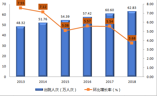 平均每家醫院出院人次6402人次,較上年增長0.04%,其中三級醫院34240人次,增長2.65%,二級醫院3743人次,減少24.3%,縣人民醫院33523人次,減少2.44%;平均每家鄉鎮衛生院814人次,較上年減少4.58%;平均每家社區衛生服務中心211人次,較上年增長136.99%。