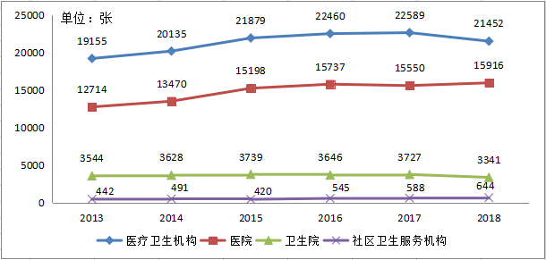 圖2 2013-2018年全市醫(yī)療衛(wèi)生機(jī)構(gòu)床位數(shù)